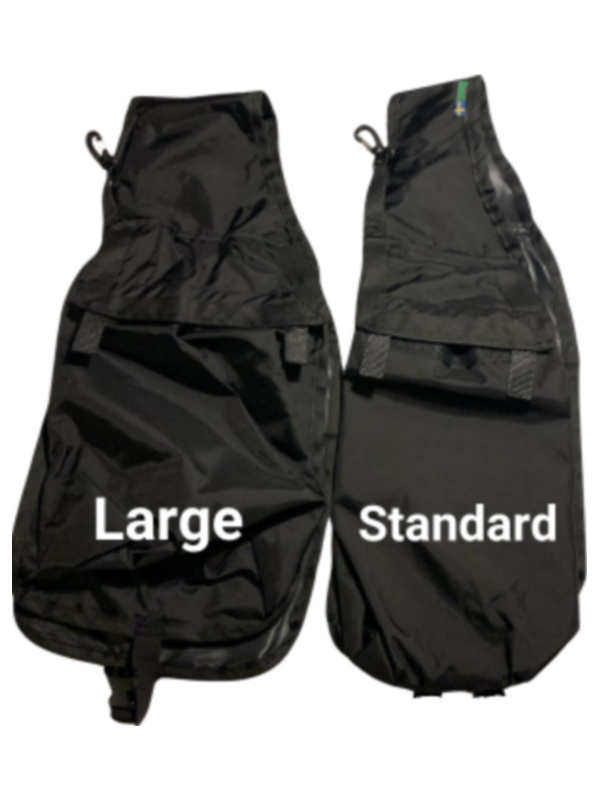 Fästs med två hakar i ringarna på sadeln samt stadigt resårband som löper runt kroppen bakom frambenen på hästen. Locket på fickorna försluts med kardborre band. Standard modellen är perfekt för kaffetermos och fika på skogs turen. Modell Large har något rymligare “väskor” där du kan få ner tex regnkläder eller underställ.