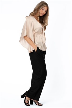 Enya är en ljuvligt fin knytblus i lyxig viskos-satin. Blusen har vida ärmar, strecthig resår i midjan för en smickrande passform, samt V-formad urringning. Blusens knyt vid bysten är säsongens mest trendiga detalj. Snygg till både fest och vardag, matcha tillsammans med en kjol eller ett par jeans och du är redo för alla sommarens tillställningar.