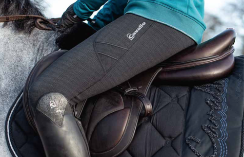 Ridleggings från Cavallo i kompressionstyg. Svagt rutmönster. En benficka på höger ben med plats för telefon. Silicongrepp