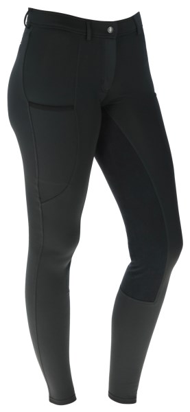 Mjukt fodrade ridbyxor från Covalliero. Helskodd med mocka-immitation. En benficka på vardera sida för plats med t.ex telefon. Hällor i midjan för skärp