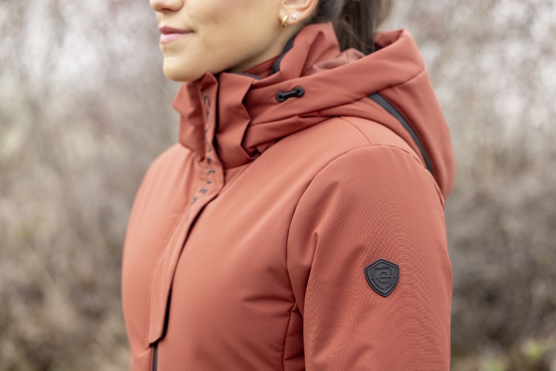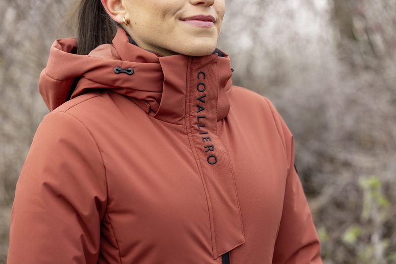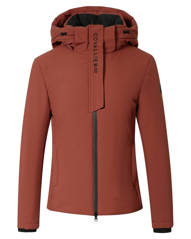 Stilren jacka från Covalliero. Vinterfodrad och vattentåligt tyg med tejpade sömmar. Avtagbar huva anpassad att kunna dra över hjälmen. Mjuka muddar förhindrar att regn och snö kommer in i ärmarna.