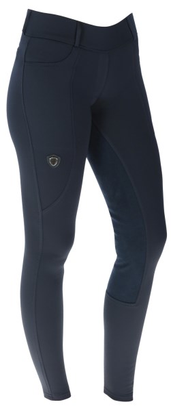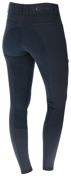 Rid-tights från Covalliero. Helskodd med mocka-immitation. Mjukt fodrad insida. En benficka på vardera sida för plats med t.ex telefon. Hällor i midjan för skärp.
