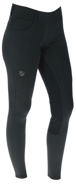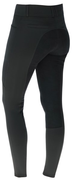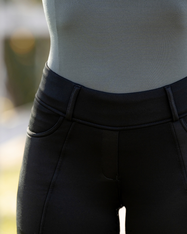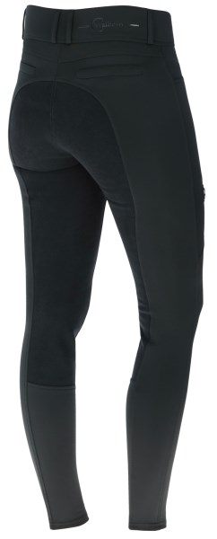 Rid-tights från Covalliero. Helskodd med mocka-immitation. Mjukt fodrad insida. En benficka på vardera sida för plats med t.ex telefon. Hällor i midjan för skärp.