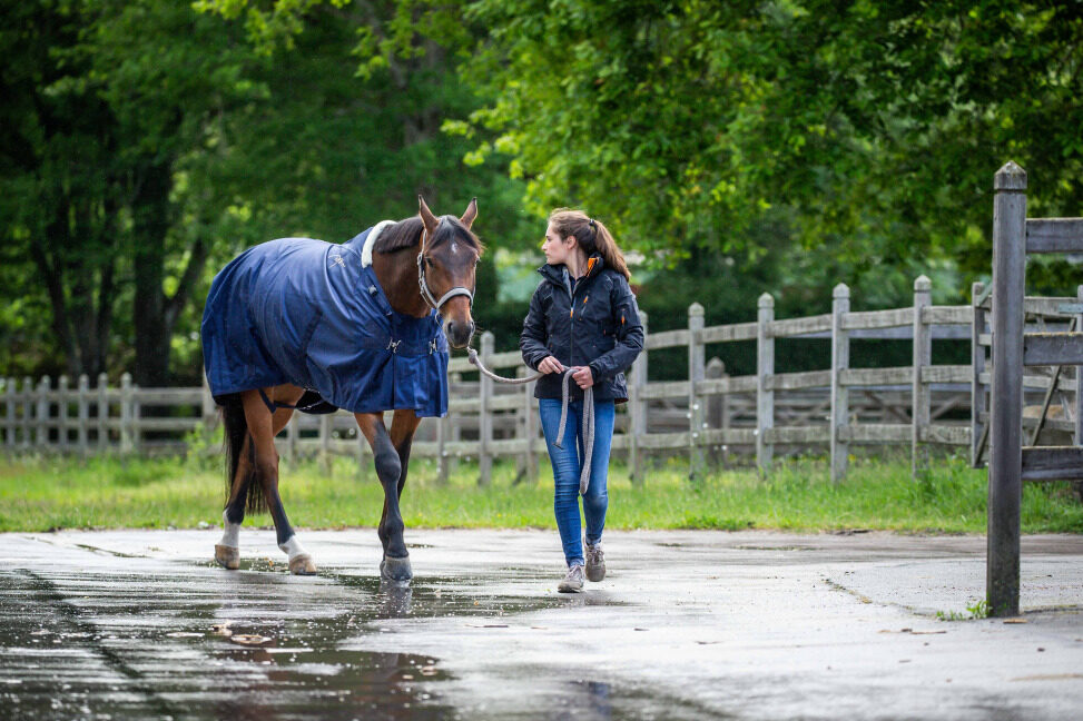 Täcket är vattenavvisande i 1200 denier rip-stop nylon (sömmarna är inte tejpade). Täcket har en unik bogknäppning för att förhindra skav och förbättra passformen. Syntetiskt fårskinn för att förhindra skav på manken.