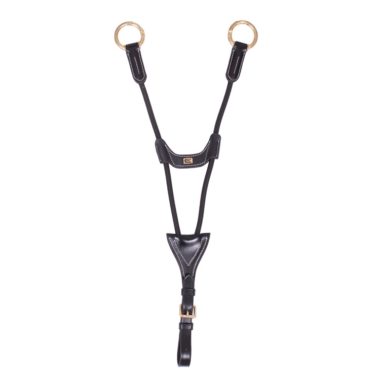 Kort elastisk martingal som är justerbar, tillverkad i exklusivt italienskt läder med vita sömmar och mässingspännen. Lyxig E-logga och spännen i mässing. Smarta öppningsbara mässingsringar för snabb och enkel hopsättning med tyglar.