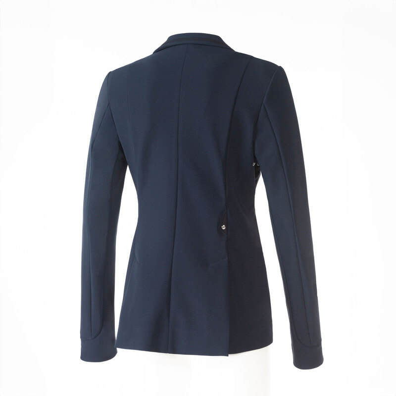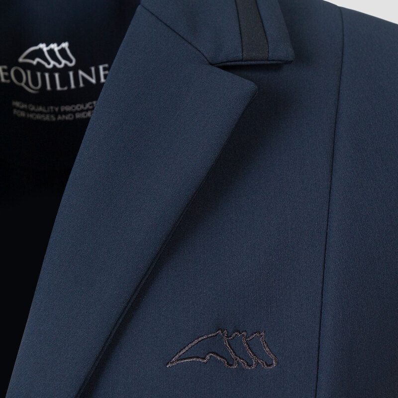 Tävlingskavaj från Equiline tillverkad av stretchtyg för en oöverträffad komfort och rörelsefrihet. De kontrasterande färgdetaljerna på baksidan av axlarna, kragen och fickorna ger en sofistikerad touch. Ofodrad för optimal andningsförmåga, den här jackan har snabbtorkande och antiskrynkelegenskaper, vilket säkerställer ett orördt utseende även i krävande situationer.