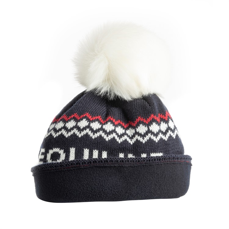 Varm stickad mössa med toffs i eco-fur och micro-fleece på insidan från Equiline.