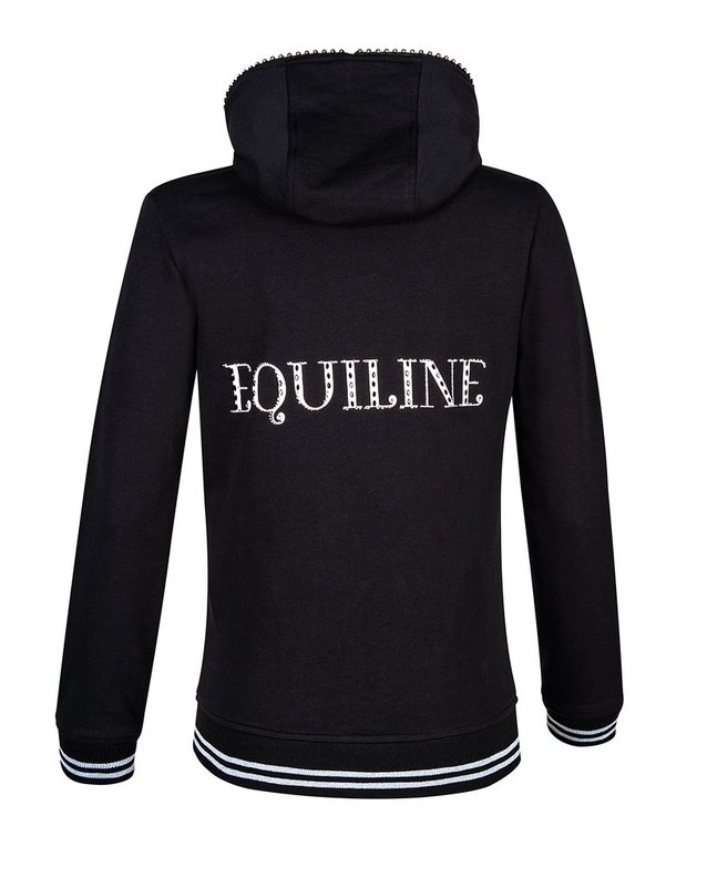 Skön hoodie från populära Equiline. Glittrande stenar i dragkedjan. Två fickor fram och logga på ryggen.