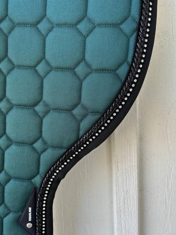 Octagonquilt i allergivänlig och antikrympbehandlad bomullsmix med insida i extra mjuk bomullsmix. Insidan är i ofärgad ecru för att förhindra att färgningssubstanser kommer i kontakt med hästen. 900 gr stoppning i bomullsull med hög andasfunktion. Materialvalet och sammansättningen av de olika lagren ger en bra stötdämpning och ventilering.