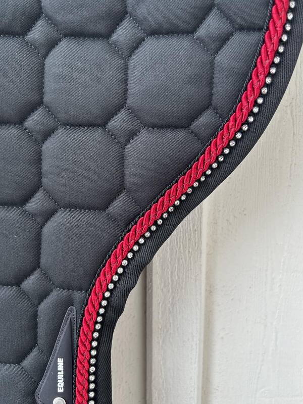 Octagonquilt i allergivänlig och antikrympbehandlad bomullsmix med insida i extra mjuk bomullsmix. Insidan är i ofärgad ecru för att förhindra att färgningssubstanser kommer i kontakt med hästen. 900 gr stoppning i bomullsull med hög andasfunktion. Materialvalet och sammansättningen av de olika lagren ger en bra stötdämpning och ventilering.