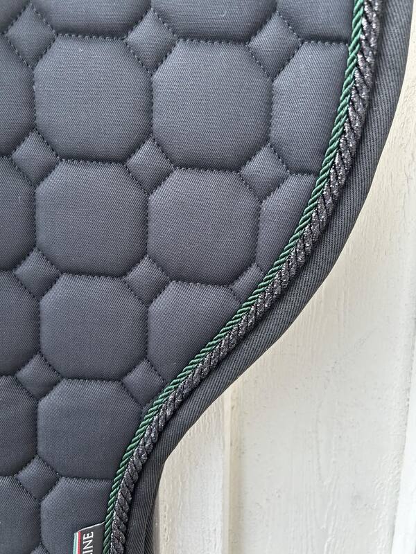 Octagonquilt i allergivänlig och antikrympbehandlad bomullsmix med insida i extra mjuk bomullsmix. Insidan är i ofärgad ecru för att förhindra att färgningssubstanser kommer i kontakt med hästen. 900 gr stoppning i bomullsull med hög andasfunktion. Materialvalet och sammansättningen av de olika lagren ger en bra stötdämpning och ventilering.