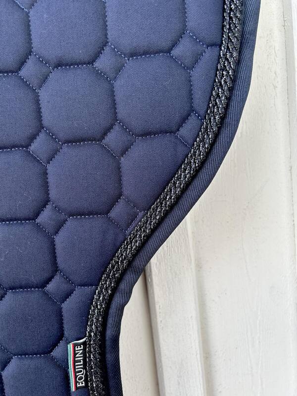 Octagonquilt i allergivänlig och antikrympbehandlad bomullsmix med insida i extra mjuk bomullsmix. Insidan är i ofärgad ecru för att förhindra att färgningssubstanser kommer i kontakt med hästen. 900 gr stoppning i bomullsull med hög andasfunktion. Materialvalet och sammansättningen av de olika lagren ger en bra stötdämpning och ventilering.
