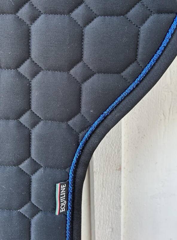 Octagonquilt i allergivänlig och antikrympbehandlad bomullsmix med insida i extra mjuk bomullsmix. Insidan är i ofärgad ecru för att förhindra att färgningssubstanser kommer i kontakt med hästen. 900 gr stoppning i bomullsull med hög andasfunktion. Materialvalet och sammansättningen av de olika lagren ger en bra stötdämpning och ventilering.
