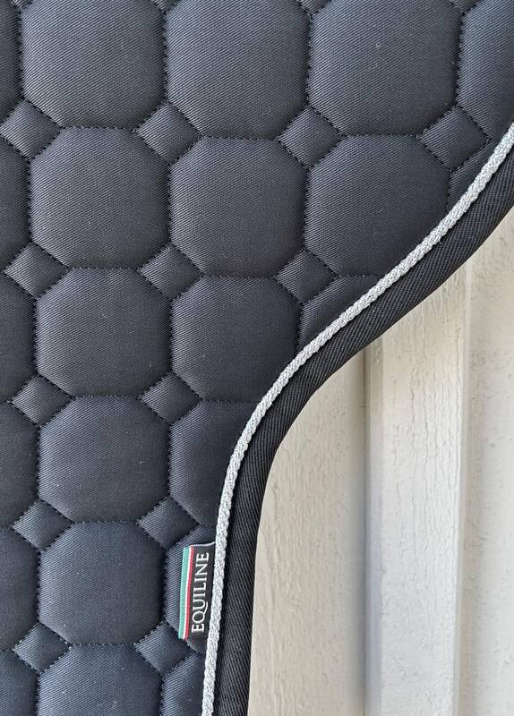 Octagonquilt i allergivänlig och antikrympbehandlad bomullsmix med insida i extra mjuk bomullsmix. Insidan är i ofärgad ecru för att förhindra att färgningssubstanser kommer i kontakt med hästen. 900 gr stoppning i bomullsull med hög andasfunktion. Materialvalet och sammansättningen av de olika lagren ger en bra stötdämpning och ventilering.