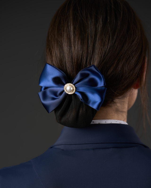 Hårnät med rosett och en stor sten, håller håret elegant på plats vid tävling!