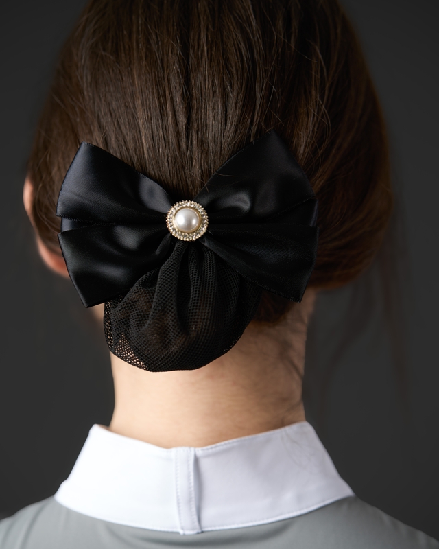 Hårnät med rosett och en stor sten, håller håret elegant på plats vid tävling!