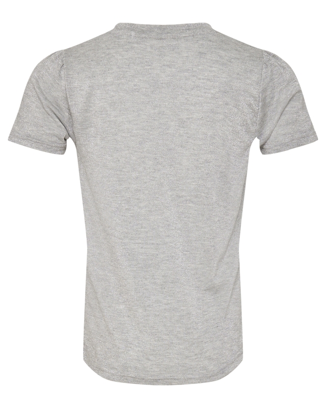 Kortärmad t-shirt med rund hals. Bomullsjersey med glittrande effekt. Tryckt enhörning på framsidan.