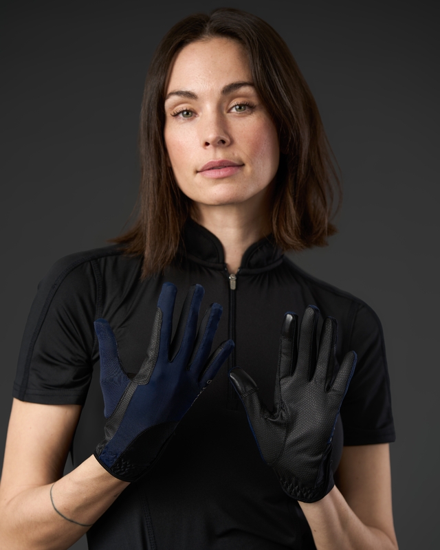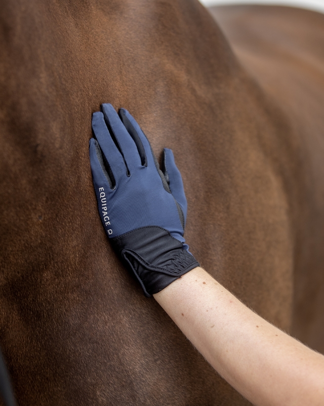 Sommarhandske med syntetiskt grepp i handflatan. Mjuk Lycra-jersey över handryggen. Elastisk vid handleden. Kompatibel med touchscreens. Reflekterande logoprint.