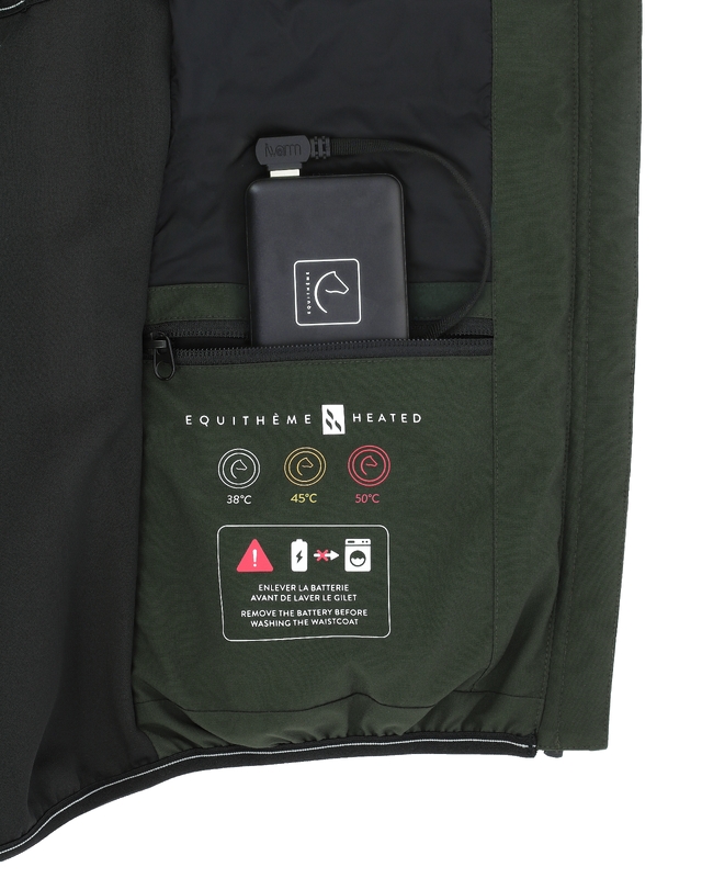 Snygg väst från Equitème med värmeslingor. Tre olika temperaturer som ändras enkelt med ett knapptryck.