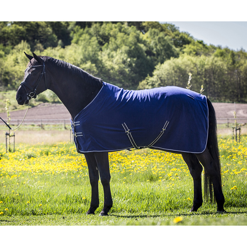 Fleecetäcke med antipilling, 260 g. Dubbla täckesfrontspännen fram. Låga kryssgjordar.Hansbo Sport-logo vänster halskant. Marint med marin/vit kant.