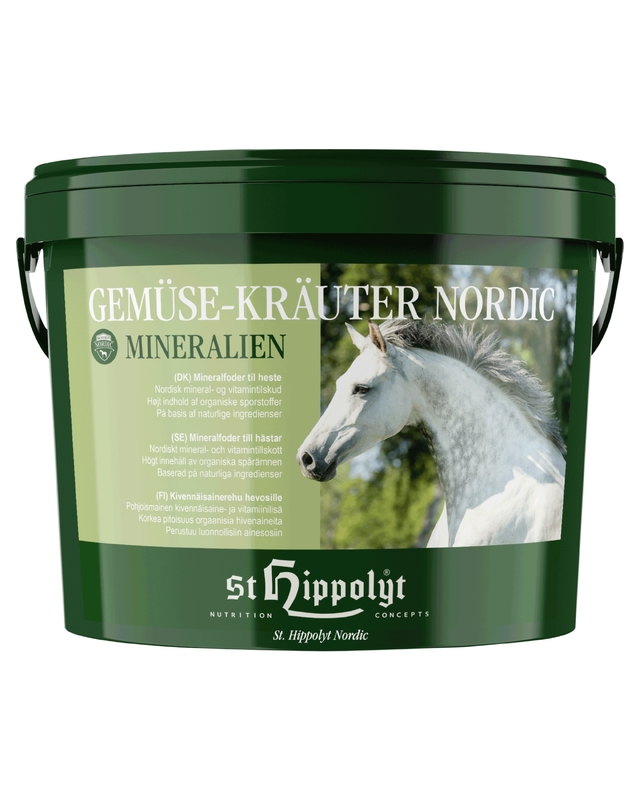 Gemüse-Kräuter-Mineralien är baserad på naturlig algkalk. Ett högt kalciuminnehåll är viktigt när hästar fodras med stora mängder spannmål där det är nödvändigt att justera kalcium/fosforförhållandet. Också dräktiga eller lakterande ston samt unghästar under uppväxt kan ha nytta av detta mineraltillskott. Gemüse-Kräuter-Mineralien innehåller alla viktiga mineraler, spårämnen och vitaminer samt essentiella aminosyror i ett noggrant avstämt inbördes förhållande.Torkad frukt, växtgroddar och örter ger en god smaklighet och en bra matsmältning med efterföljande hög upptaglighet av mineraler och aktiva substanser till blodet. Till hästar som inte är i avel eller uppfödning, eller där fodret inte enbart består av rent spannmål, rekommenderas i stället SemperCube, medan hästar med spårämnesrelaterade ämnesomsättningsproblem bör tilldelas MicroVital, GlucoGard® eller GlandoGard.