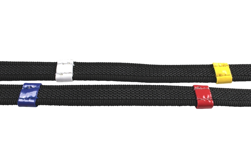 Supergrip-tygel med färgade stoppar. Finns med silverfärgad, mässingfärgad eller svart pistolhake, samt utan hake. Perfekt som ridskoletygel! Längd: 250 cm