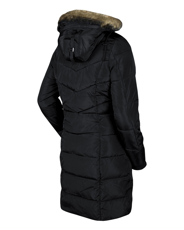 Härlig vinterkappa från Horka. Mjukt och värmande foder i ryggen. 2 tejpade fickor fram och en innerficka med dragkedja. Tejpad tvåvägs-dragkedja fram och två dolda slitsar baktill för att kunna rida i kappan. Avtagbar huva med avtagbar fuskpäls. Rymlig i storleken.