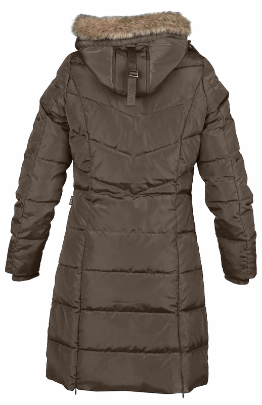 Härlig vinterkappa från Horka. Mjukt och värmande foder i ryggen. 2 tejpade fickor fram och en innerficka med dragkedja. Tejpad tvåvägs-dragkedja fram och två dolda slitsar baktill för att kunna rida i kappan. Avtagbar huva med avtagbar fuskpäls. Rymlig i storleken.