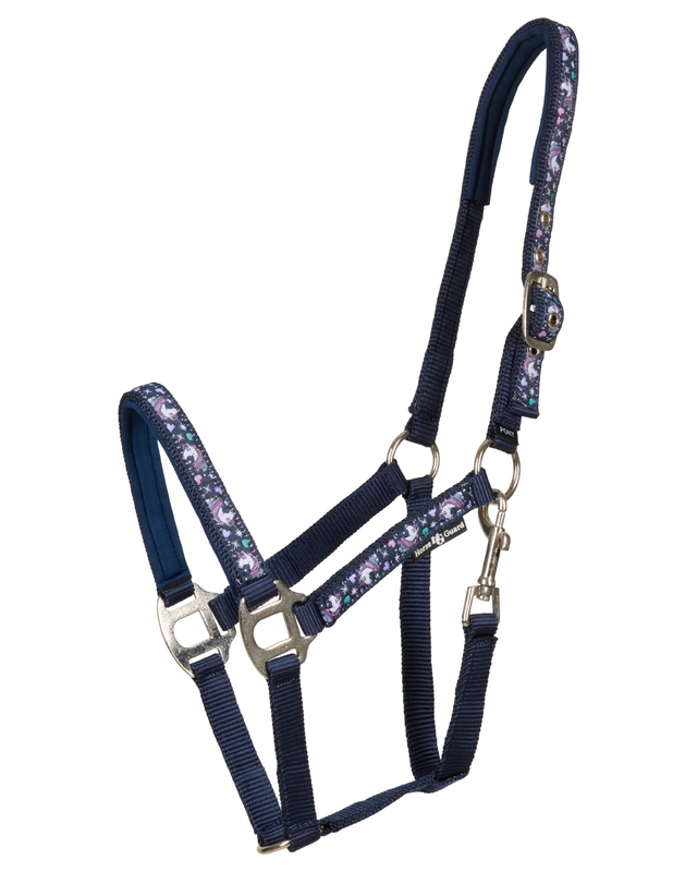 Grimma dekorerad med stjärnor, hjärtan och enhörningar. Fodrad med mjuk neoprene över nacke och nos. Justerbar nackrem.