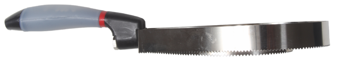 Svettskrapa från Karlslund med gelhandtag. Tandad på ena sidan vilket gör den utmärkt till pälsfällningen!