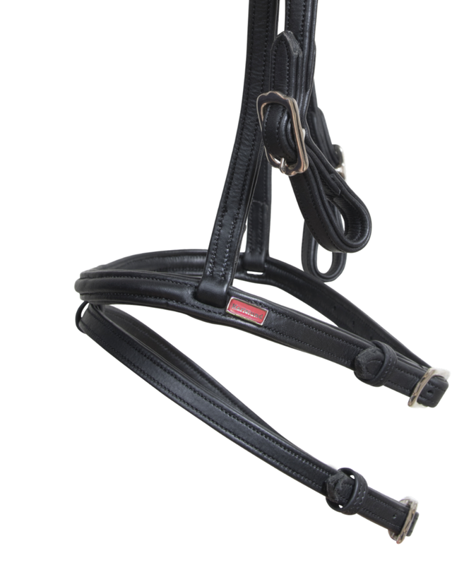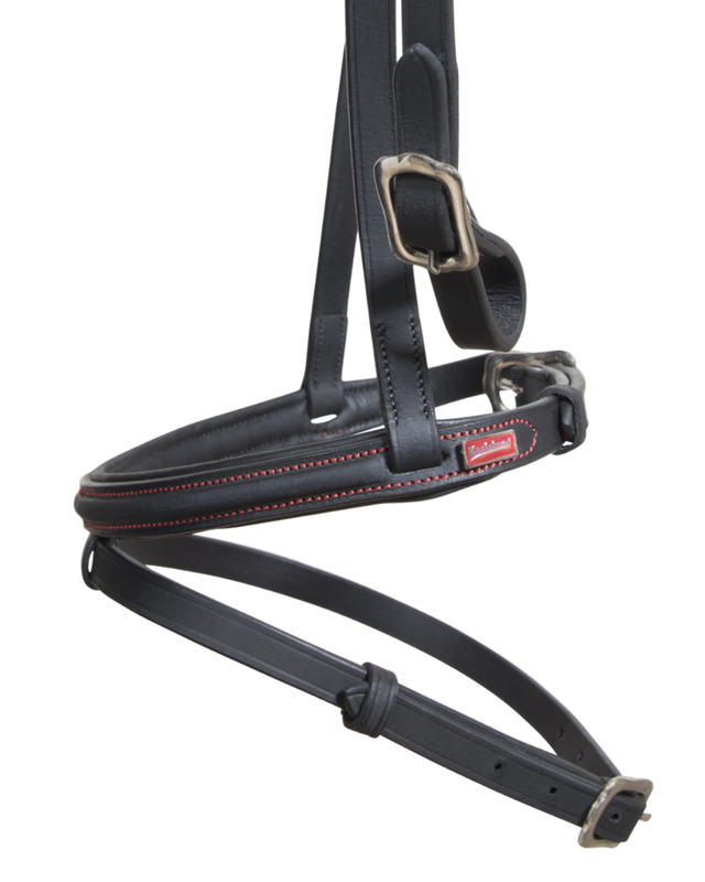 Träns i mjukt läder från Karlslund. Finns i svart, och svart med röda sömmar.