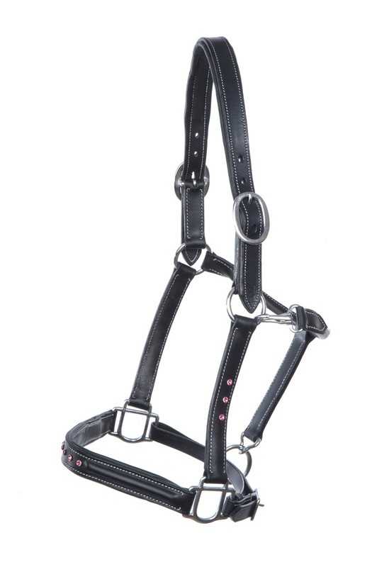 Lädergrimma från Hilbar i fin kvalité. Dekorerad med stenar på sidorna och över nosen