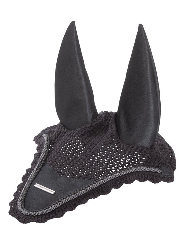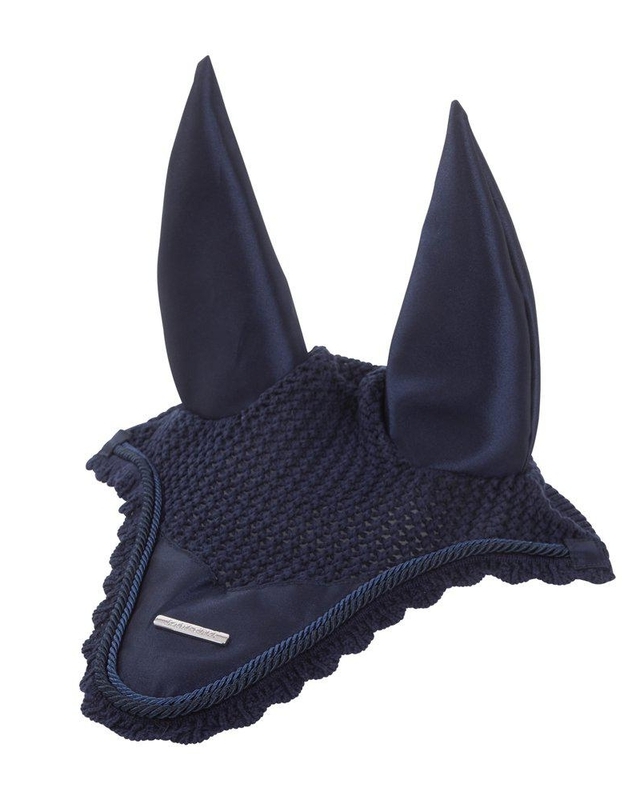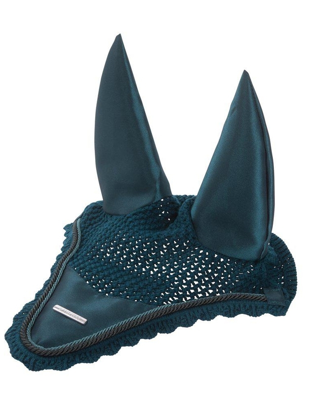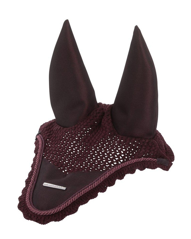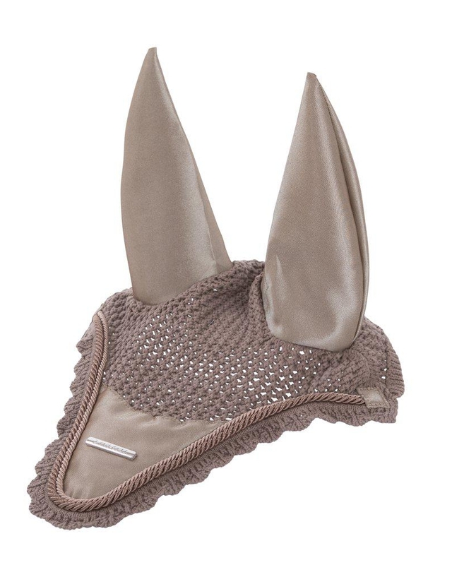 Virkad bomullshuva som matchar till schabrak och övriga produkter i Lami-cell Aurora serie. Öron och infällning mitt fram i samma skimrande tyg som i schabraket. Dubbla silkespasspoaler och dekorativ Lami-cell metall badge. Praktiskt gummiband på undersidan ger möjlighet att fästa huvan i pannluggen el. nosgrimman och på så sätt förhindra att huvan fladdrar.
