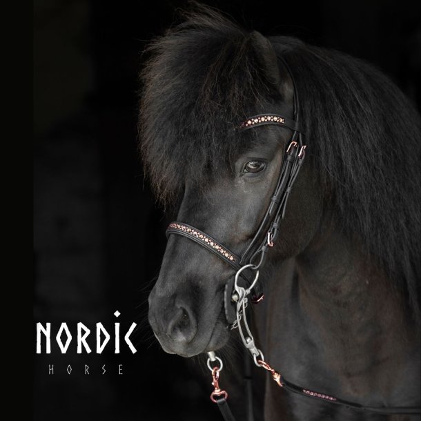 Kombinerad nosgrimma-del från Nordic Horse dekorerad med stenar i rosegold. Passar de flesta kombinationsträns i Islandsmodell.