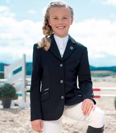 Tävlingskavaj i juniormodell från Pikeur. Silverfärgade metallbitar dekorerar krage, slag och slits.
