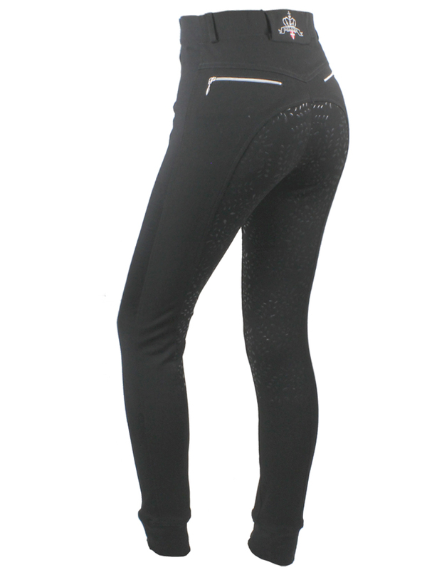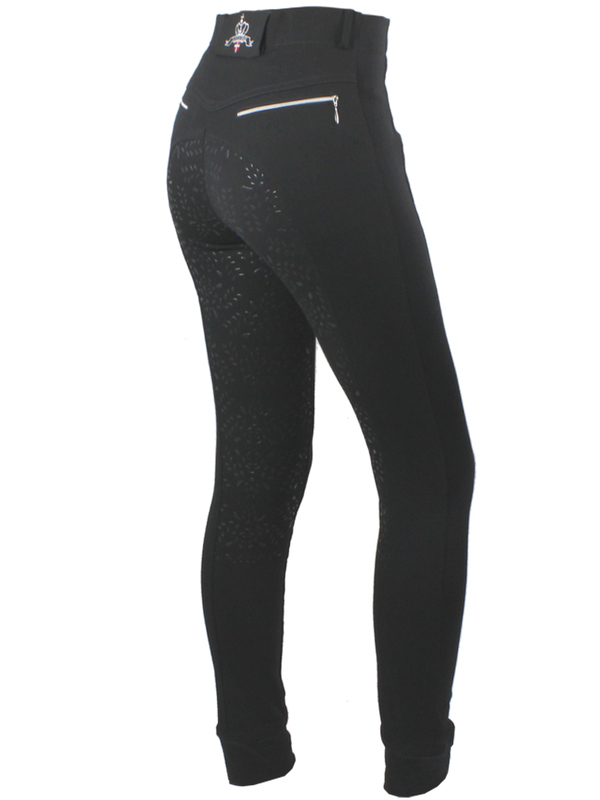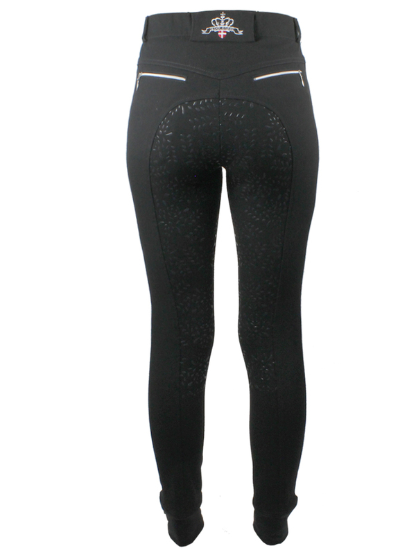 Smart och praktisk Pull-up ridbyxa "Equestrian leaves " med Power-Grip i form av små löv.
