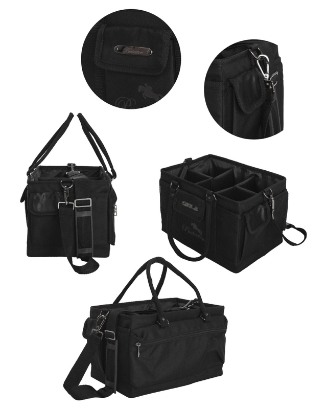 Stadig vikbar ryktväska med gott om plats för dina som dina ryktsaker och putsprodukter. Väskan har rejäla bärhandtag och mängder med praktiska justerbara fickor som hjälper dig att hålla reda på dina småsaker. Utvändiga smarta förvaringsfickor samt nät i botten. Spännen i dark-silver.