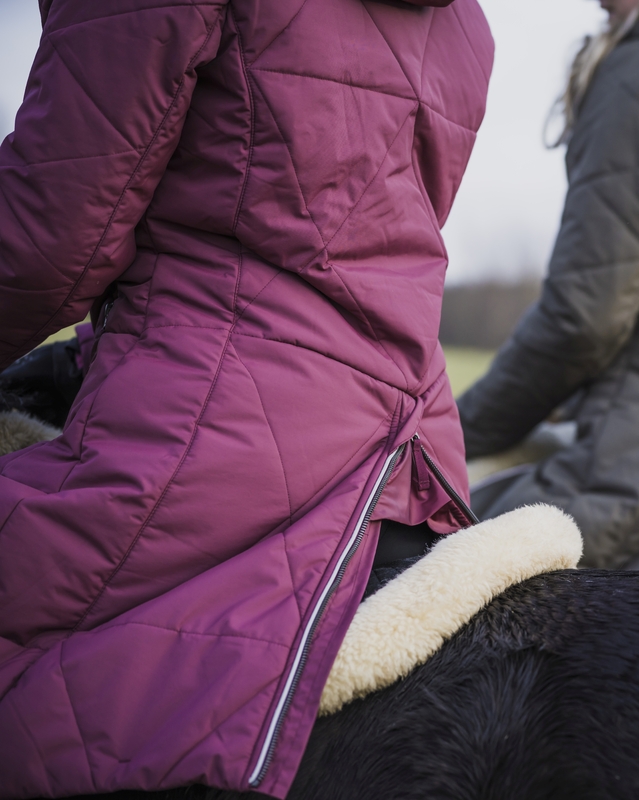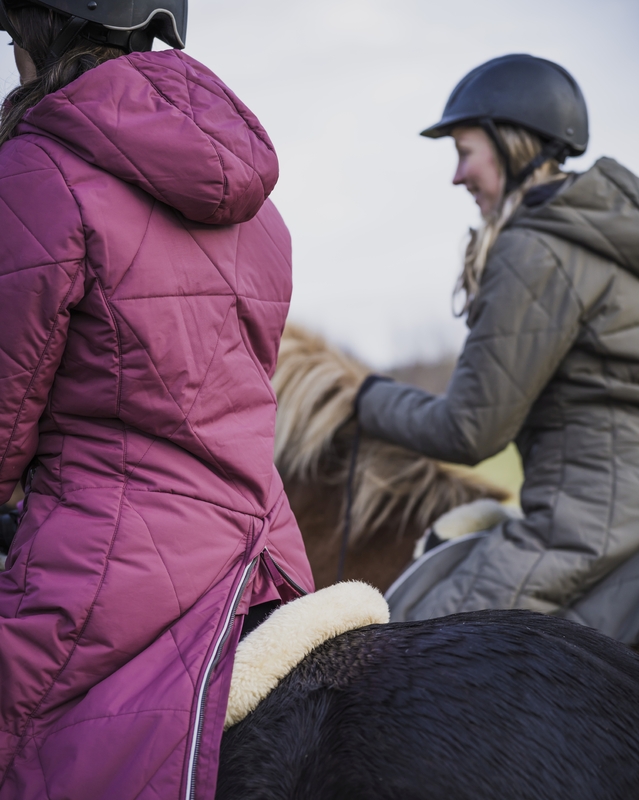 Kappan är längre fram för bästa skydd för ben och knän från väder och vind och håller dig ordentligt varm, samt kortare baktill för funktionens skull. Reflexdetaljer fram och bak för att du ska synas ordentligt ute i mörkret. Benremmar inuti fram för att kunna fästa fast kappans framstycken när du öppnar upp den för att hoppa upp på cykelsadeln eller i hästsadeln eller ta ut skridskoskäret ordentligt. I Nikki Coat kommer du vilja fortsätta vara ute trots väder och vind.
