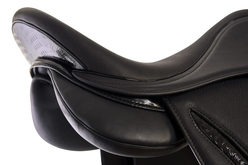 Det djupa och balanserade sätet säkerställer nära kontakt mellan ryttare och häst, vilket skapar idealiska förutsättningar för exakt kommunikation och maximal komfort. Sadeln är gjord av exklusivt högkvalitativt kalvläder och designad med ergonomiska knästöd, som ger stöd åt låret utan att besvära knät.