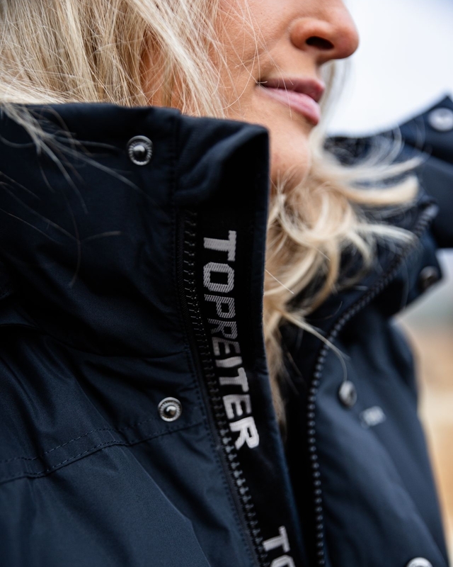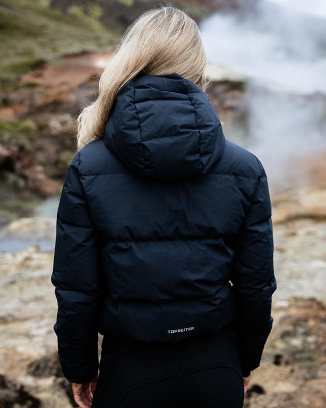 Modern dunjacka från Topreiter. Kort design som är optimal för ridning så att jackan inte är i vägen då du sitter i sadeln. 90% dun, 10% fjäder. Yttertyg i ett vattentåligt material.