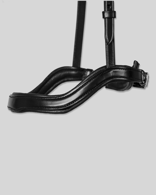 Engelsk nosgrimma med anatomisk utformning. Silverfärgade spännen.