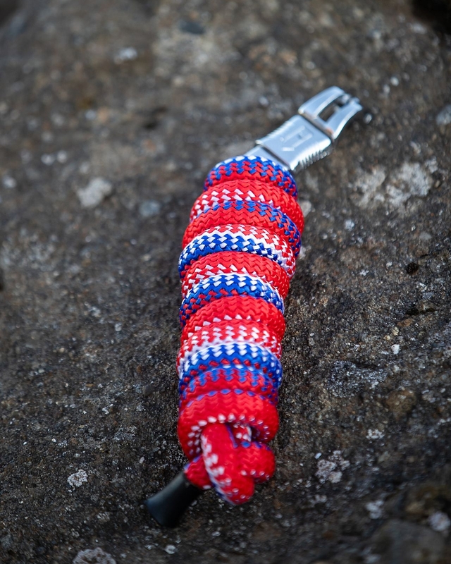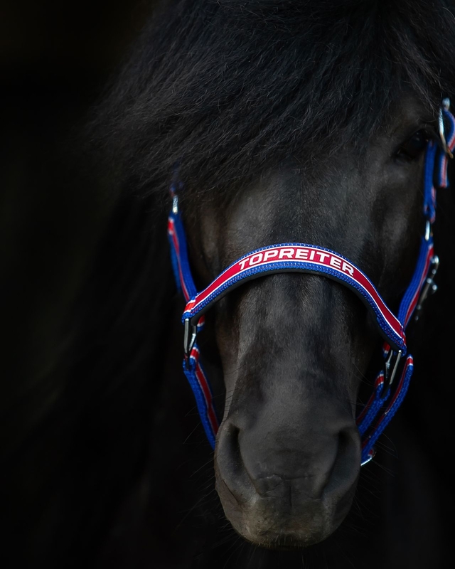Grimma och grimskaft i islandsfärger, blå vit röd.