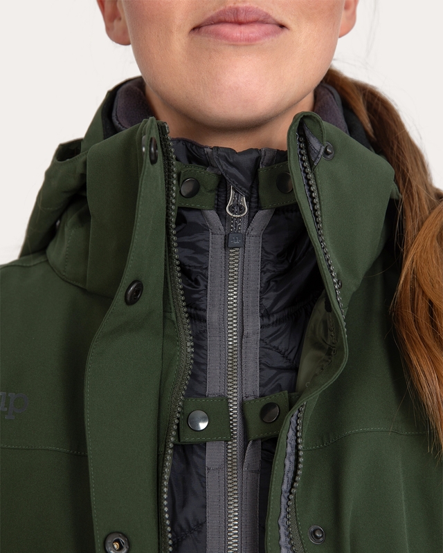 Hailey är en regntät ridkappa, perfekt under vår och höst när det är kyligt och opålitligt väder. Den har ett tunt fodertyg på insidan för skön komfort men är annars helt ofodrad.