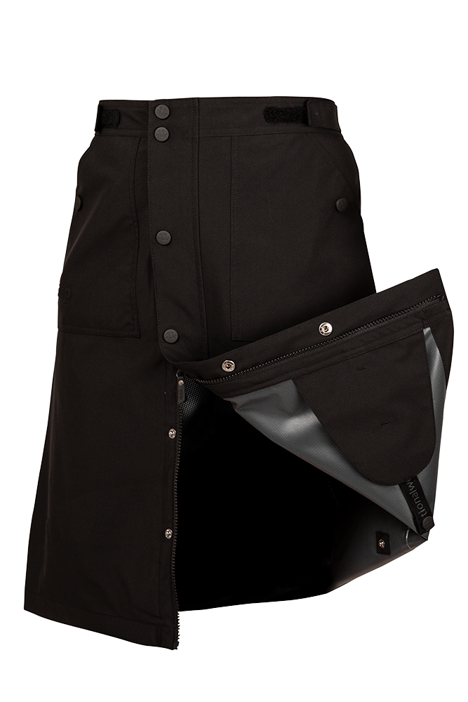 Ridregnkjolen har både snygga och funktionella detaljer som dragkedjor fram och bak samt elastiska benband på kjolens insida. Detta gör det möjligt för dig att sitta i sadeln och låta kjolens sidor skydda dig även till häst. Är lätt att vika ihop och ta med. Tillverkade av ett tåligt men lätt polyestertyg med mekanisk stretch som skapar bekvämlighet och rörelsefrihet. I övrigt ger tygets konstruktion med membran på insidan samt de tejpade sömmarna ett mycket gott skydd mot regn. Normala is storlekarna och även om de är figursydda så är det räknat med att man skall kunna bära ett mellanlager under. Välj inte för liten storlek, står du mellan två storlekar rekommenderar vi att du tar den större så du även för rum med en luftspalt. De är viktig för värmeförmågan.