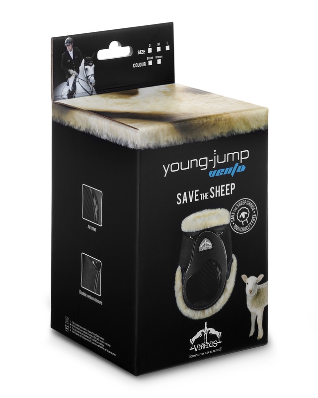 Bakbenskydd - Young jump vento med insida i syntetfårskinn.